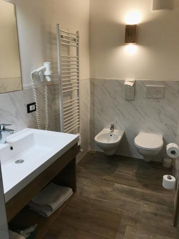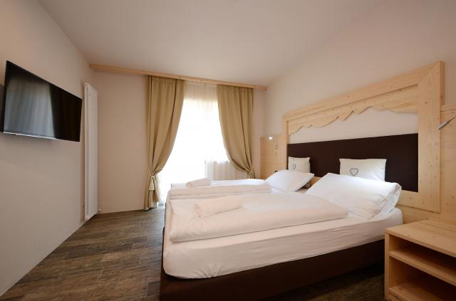2 osoby, sociální zařízení, balkon #Suite 3/4/5: 30 až 37 m² - pokoj s manželskou postelí a rozkládacím křeslem na lůžko pro 1 osobu či rozkládacím gaučem pro 2 osoby, sociální zařízení s vanou, balkon; některé pokoje částečně oddělené #další typy pokojů: za příplatek lze objednat též další typy propojených pokojů až pro 6 osob (např. prostornější, oddělené, komfortně zařízené, s multifunkční sprchou či vířivou vanou, s balkonem) |